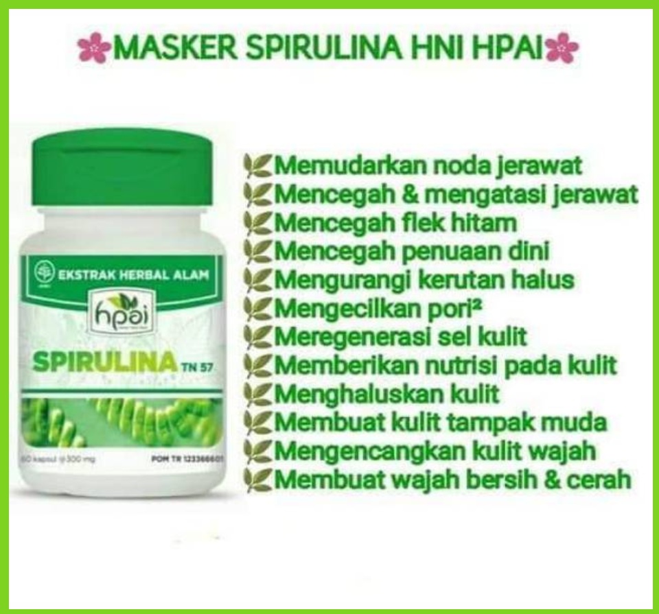 Memiliki sumber anti oksidan yang sangat tinggi, berperan untuk meregenerasi spirulina masker. Hpai spirulina tn 57 merupakan kapsul yang dapat digunakan sebagai masker.